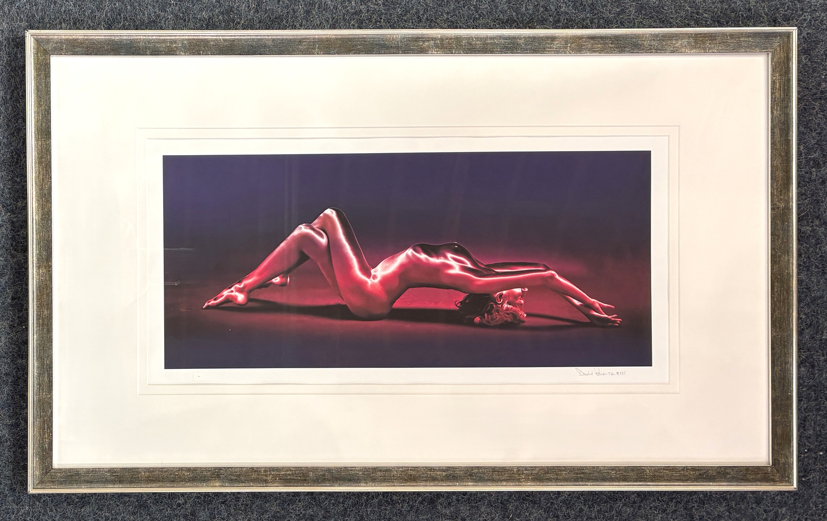 David Brims (British, contemporary), Reclining Nude, signed photographic print, signed lower right, 25.5cm by 53.5cm (ARR)