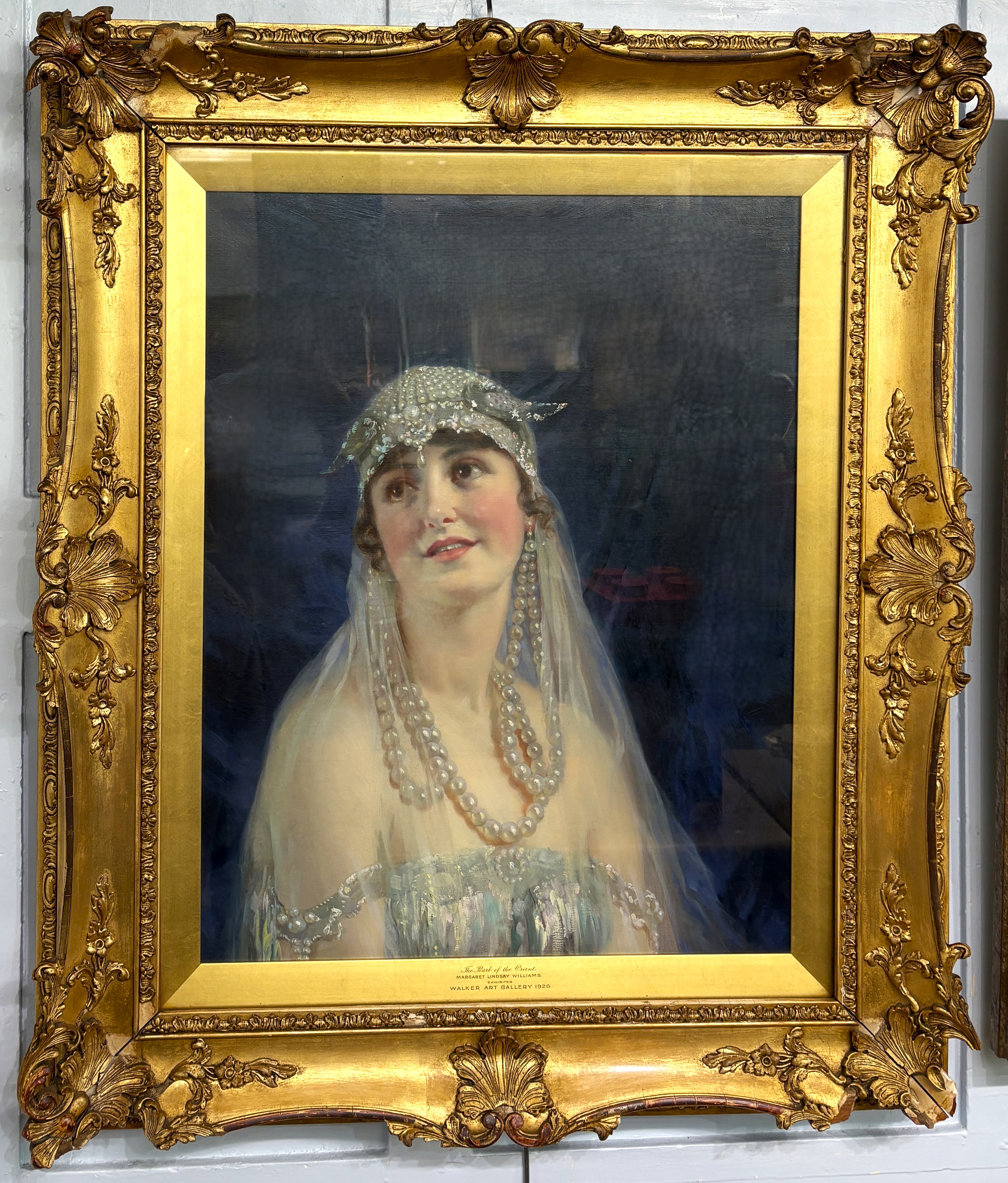 Margaret Lindsay Williams (Welsh, 1888-1960), 'The Pearl of the Orient', oil on canvas, signed and dated 1920 top right, further details inscribed to gilt slip, 64cm by 50cm, inset ornate swept gilt gesso frame, (some losses to frame).