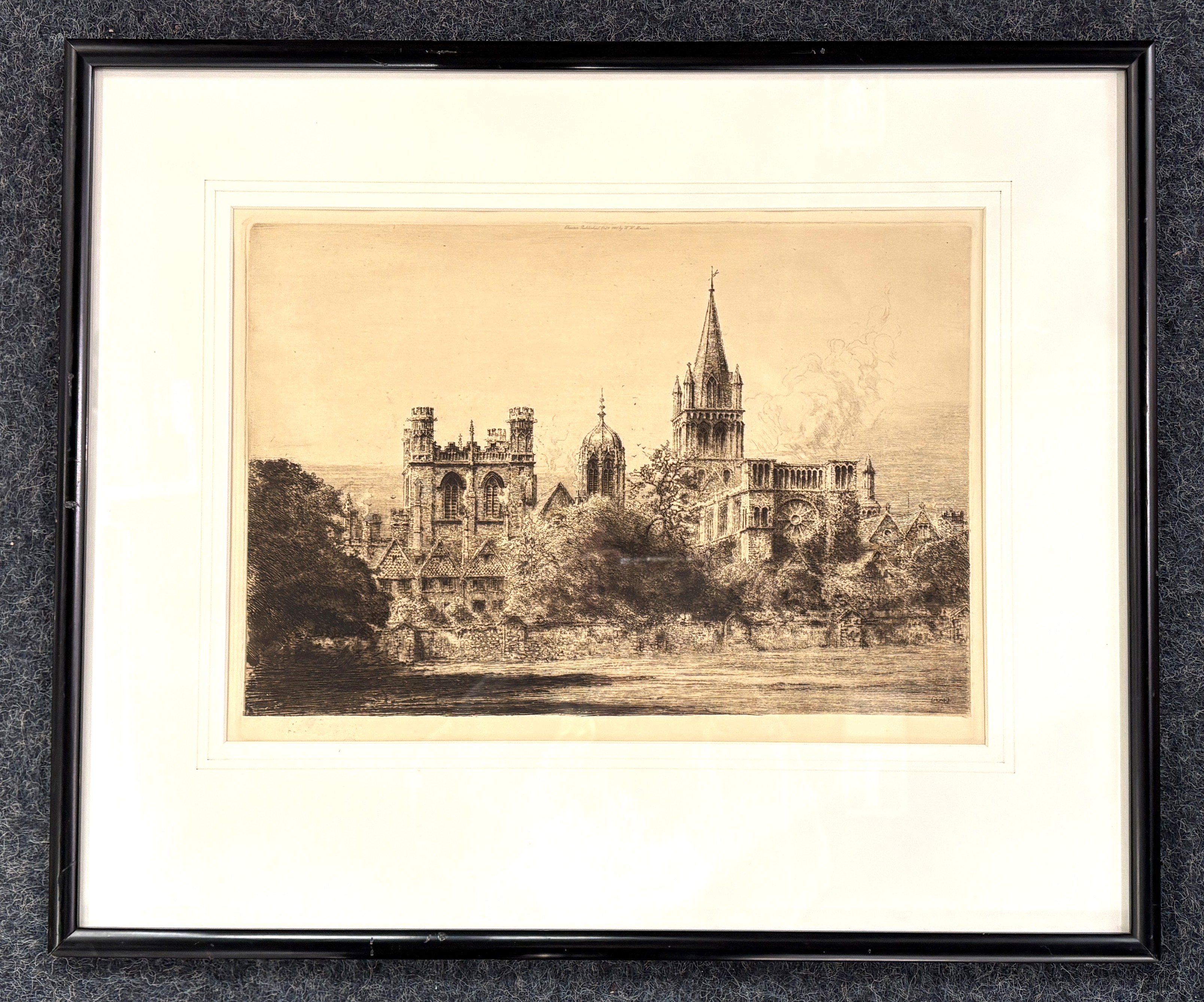 William Monk (British, 1863 - 1937), Christchurch College, Oxford, etching, publshed by Meeson, 1910, framed and mounted, 25cm by 35.5cm