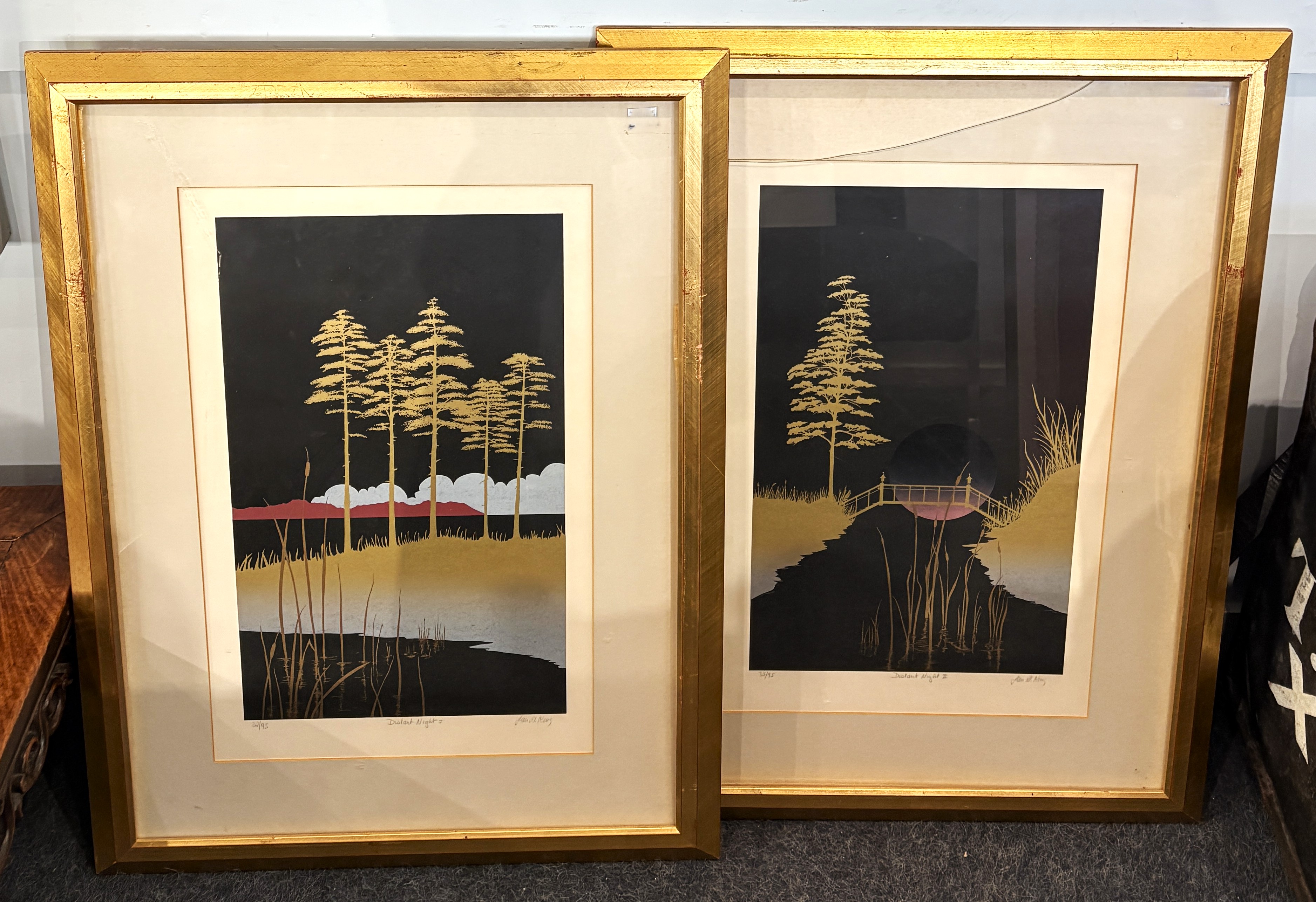 Jan King (b.1945), 'Distant Night 1' and 'Distant Night 2', two signed limited edition prints, 32/95 & 35/95, 46cm by 28cm, framed.