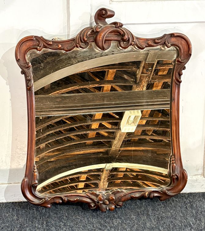 A 19th century mahogany framed scroll carved wall mirror 63cm by 54cm
