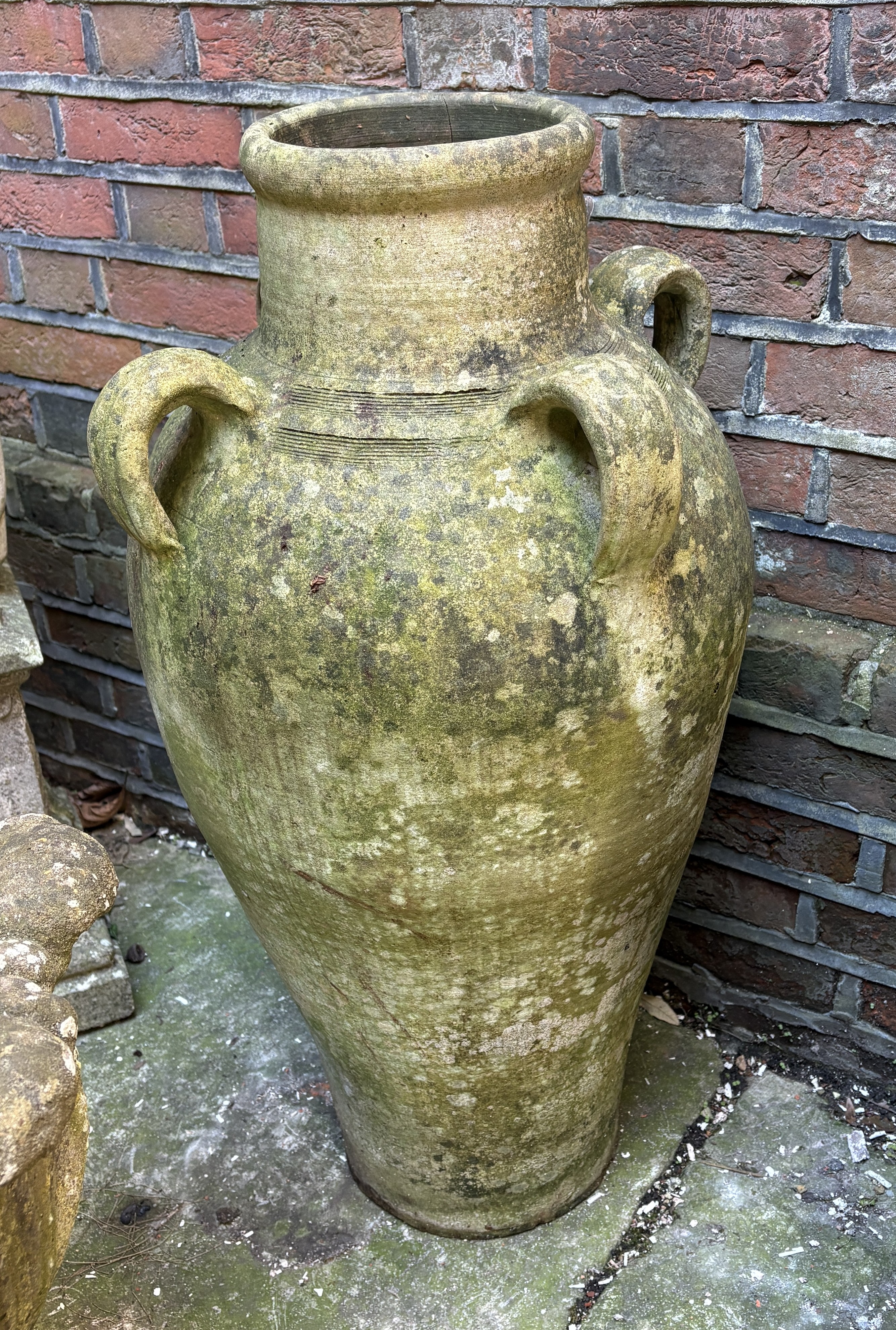 A tracotta garden urn with four loop handles, in the style of aGreek olive jar, 78cm high.