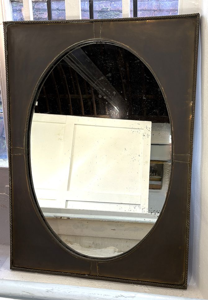 An Arts & Crafts copper wall mirror / picture frame, 77cm by 56cm.