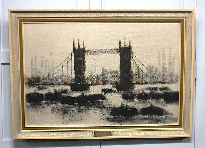 Follower of Anthony Klitz (Irish, 1917 - 2000), 'Tower Bridge, London', oil on canvas, signed 'KRLITZ', 60cm by 90cm, framed.