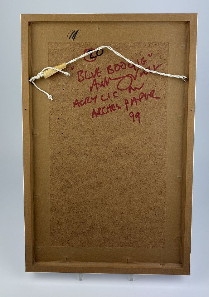 Anthony Frost (b 1951), 'Blue Boogie', acrylic on paper, unsigned verso inscribed, signed and dated 99, 23cm by 10cm (ARR)