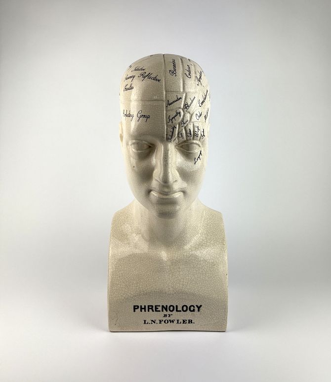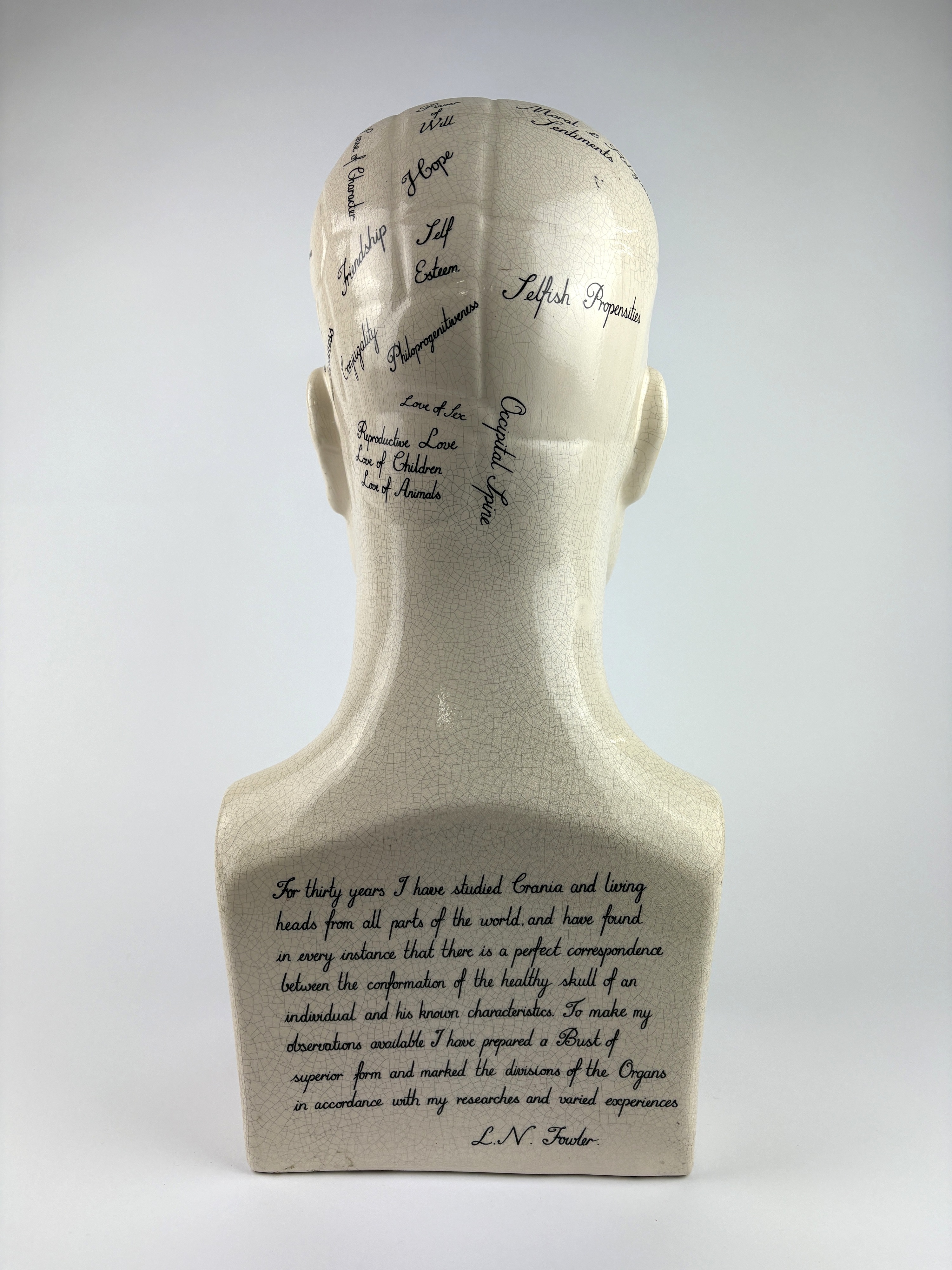 A large ceramic Phrenology bust, marked 'L N Fowler, 337 Strand, London', 48cm high.