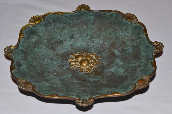 A bronze dish; a carved wood native panel; a glass inkwell; a pewter mounted glass decanter; a Dudson 'Jasperware' jug; a parrot and other items