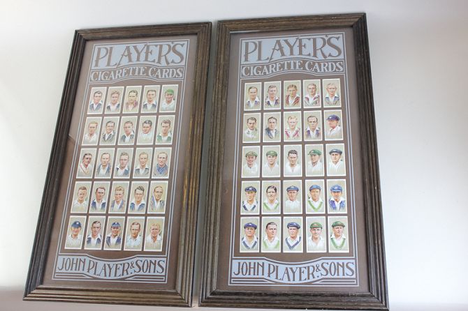 Two framed displays of Players cigarette cards, 25 in each, frame 62cm by 33cm