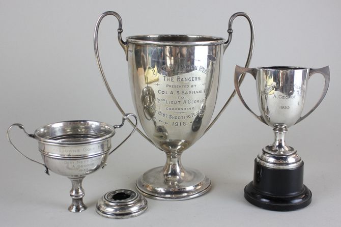 A George V silver trophy cup, Sheffield 1913, together with two other silver trophy cups (one a/f), all inscribed, 22oz
