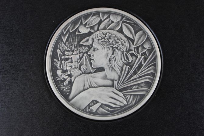A Royal Mint St George and the Dragon Masterpiece eight ounce silver coin, boxed
