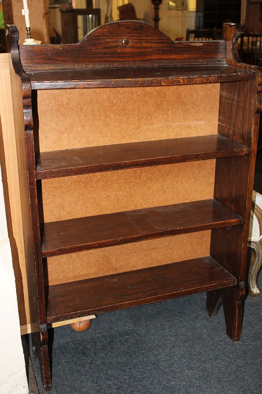 A dark oak bookcase of four shelves, the top shelf bowed with beaded design, 73cm