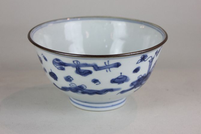 A Chinese blue and white porcelain bowl with flared rim, 13.5cm diameter