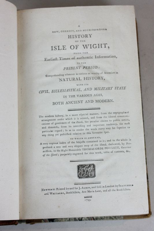 J Albin, A History of the Isle of Wight published by J Albin, London 1795, (NC)