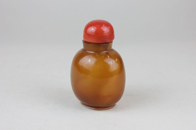 A Chinese amber glass snuff bottle, 9cm high