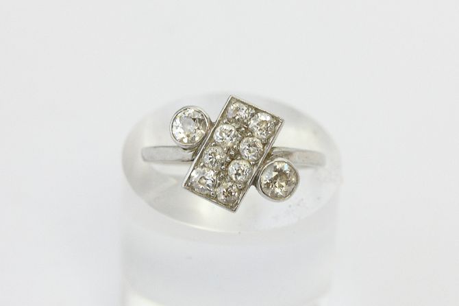 A old cut diamond cluster ring the central eight stone panel between collet set stones