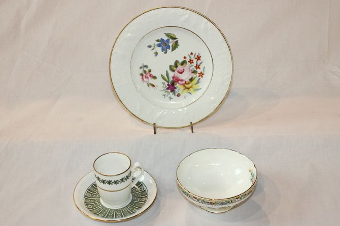 A part 19th century floral decorated porcelain dessert service; six coffee cups and saucers; two dishes and other items