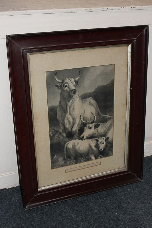 19th century school, cattle in a landscape titled Wild Cattle at Chillingham, print, 46cm by 32cm, (NC)