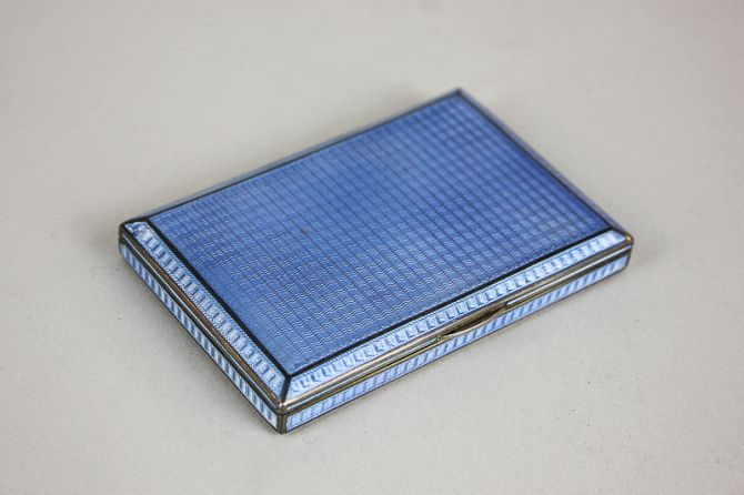 An Austrian silver and blue enamel trinket box marked Sterling with London import marks, 1922, 9cm long