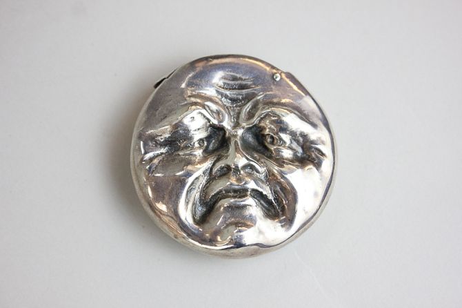 A novelty silver circular vesta case with embossed smiling face on one side, a sad frowning face on the other, London 1988, 4cm