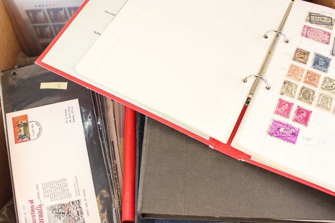 A large collection of Victorian and later British and around the world stamps housed in nine albums, including nine penny reds and first day covers