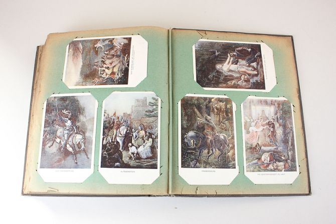 An album of early 20th century postcards, mostly Art History, some gnome characters by Paul Lother Muller and other fairytale subjects (NC)