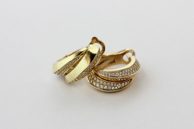 Cartier, a pair of diamond hoop earrings, each pave set with two rows of diamonds, post and clip fittings, signed and numbered 79977A