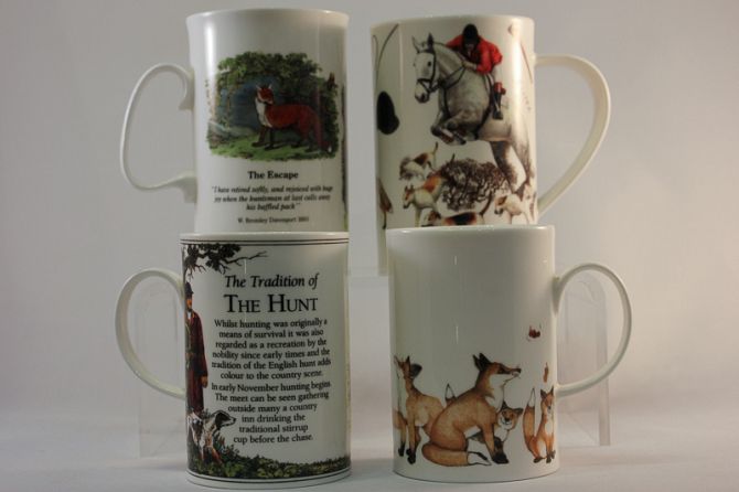 A collection of fox ornaments and fox decorated cups, storage jars etc.