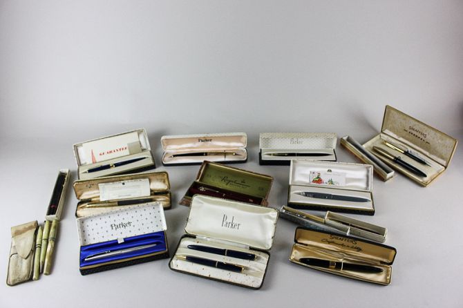 A collection of various boxed fountain pens, ballpoint pens and propelling pencils by Parker, Watermans, Conway Stewart and others