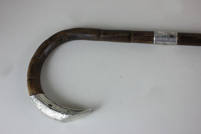 A George V silver mounted walking cane, London 1913, with chased scroll design
