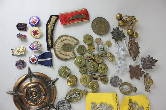 A large collection of Military badges, crests, buttons, crests and medallions, from Canadian, Australian and British regiments including West Yorkshire, Prince of Wales, Westminster and Wiltshire, also with Military Police, Royal Corps of Signals, City of Winnipeg and many others