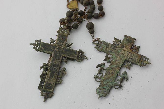 Two Continental silver crucifixes engraved and with reliquary compartments to the reverse (NC)