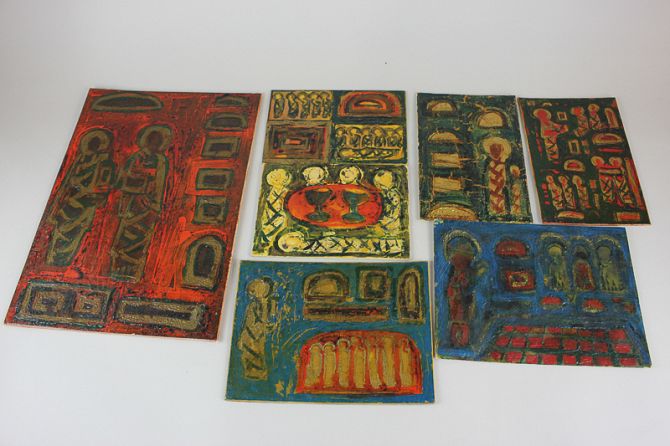 Enrico Cervelli (Italian 1927-1961) ten abstract compositions, on board, unframed, largest 35cm by 25cm, smallest 12.5cm by 13cm (10)