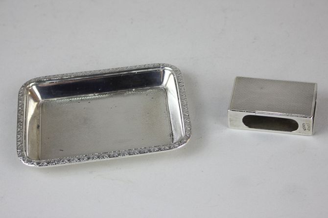 A George V silver ashtray, maker Asprey, London 1931, with machined design and decorative border, together with a matching matchbox cover, 2oz