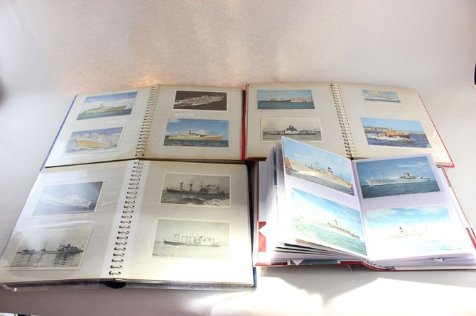 Eight albums of postcards of ships including Union Castle Lines, Royal Navy, Cunard and White Star Lines, P & O and various others, approximately 360