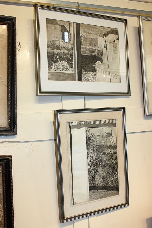 Philip Wooley (20th century), two views across a garden, etchings, both inscribed verso, largest 24cm by 33.5cm
