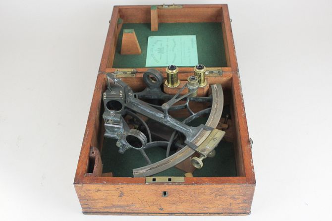 A Victorian cased sextant by G Whitbread, London, in fitted case, with accessories, maker's name inscribed to dial