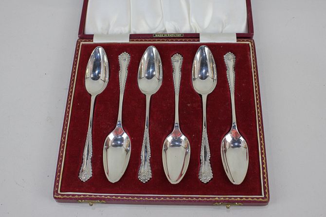 A cased set of six Elizabeth II silver grapefruit spoons, maker Henry Clifford Davis, Birmingham 1964, 4.5oz