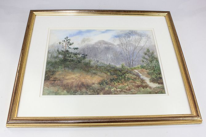 Fred H Dudley (Late 19th/20th century), wooded landscape, stream foreground, watercolour, signed, 24.5cm by 35cm