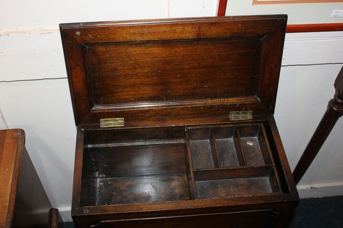 A rectangular mahogany box with hinged cover, on slender cabriole legs, 50cm