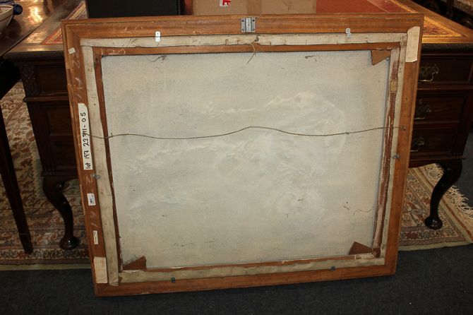 Attributed to Dennis Wirth Miller (b.1915), sunset, oil on canvas, unsigned, paper labels verso, 75.5cm by 90cm, (ARR)