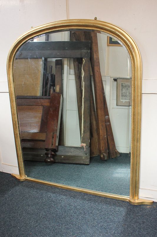 A large giltwood and gesso framed over mantle mirror, with beaded border and bevelled glass, mirror plate 128cm by 100cm