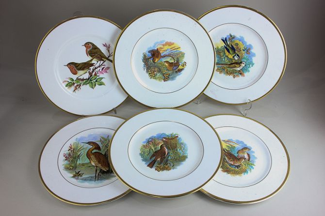A set of six Coalport porcelain plates decorated with birds reproduced from original Pratt prints, 27cm