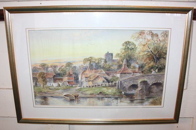 A Storie (19th / 20th century), view of Pulborough and rover, Sussex, watercolour, signed, 29cm by 50cm