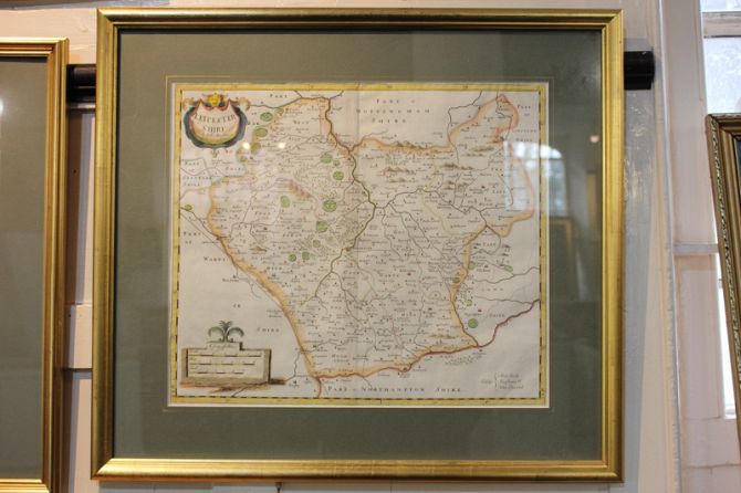 A Robert Morden map of Leicestershire, framed, 36cm by 42cm