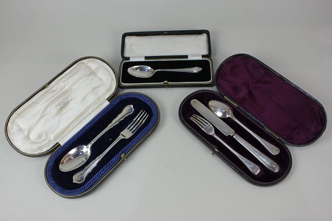 A Victorian silver cased christening set makers Barnard & Sons Ltd, London 1871, together with a cased christening set, 1919, and a cased silver spoon, 1928, 4oz