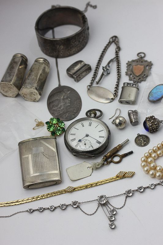 A silver bangle, a small quantity of bijouterie and a Victorian silver vinaigrette (handle missing)