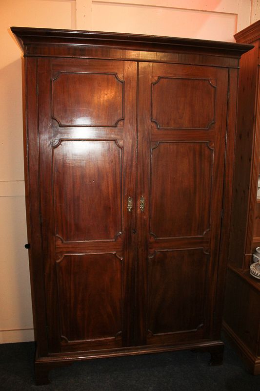 A Continental mahogany wardrobe with moulded cornice, twin panelled doors, on bracket base, 120cm