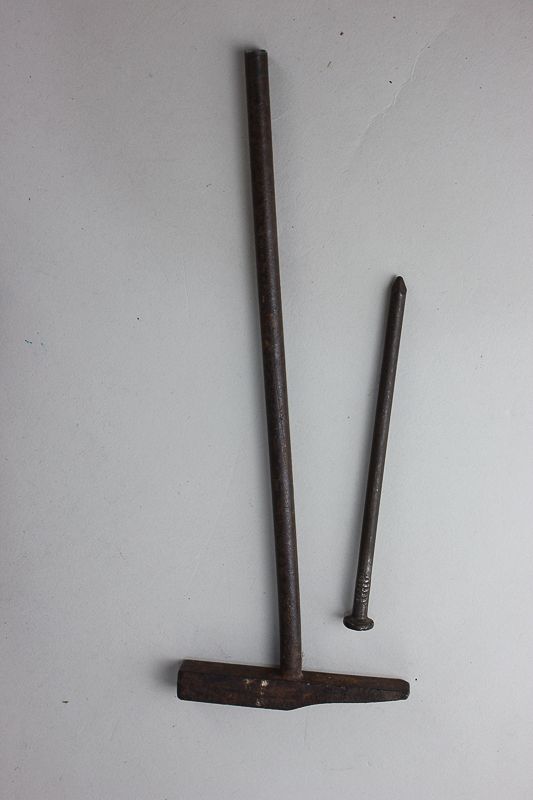 A large spelter figure of a man beside an anvil, 'Industrie', 56cm, (a/f)