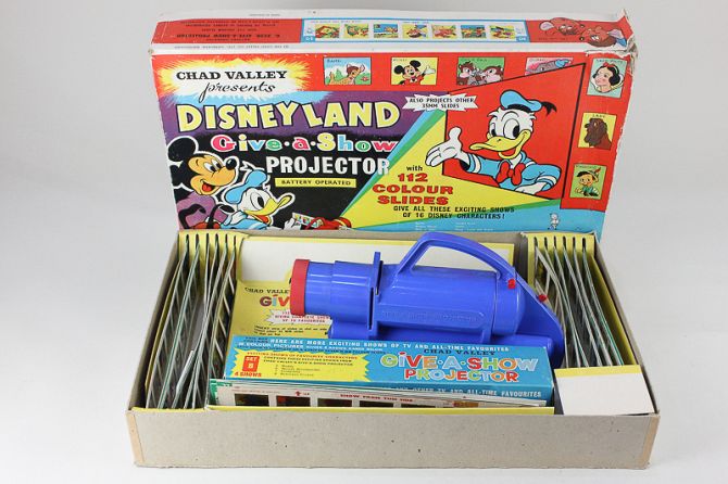 A Chad Valley Disneyland 'Give a Show' projector in box with slides