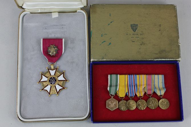 A United States of America Legion of Merit, cased, together with a miniature set of American Second World War medals comprising Armed Forces Reserve, War medal, Asiatic Pacific Campaign medal, American Campaign medal, American Defence medal, and medal for Military Merit, boxed